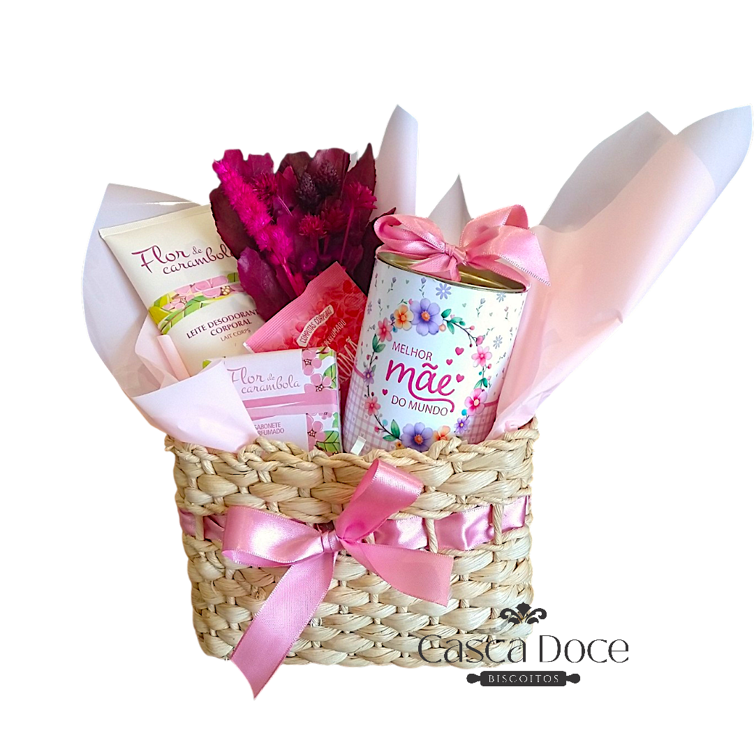 cestas cuidadosamente montadas, biscoitos artesanais feitos com carinho e composições que traduzem amor em forma de presente.